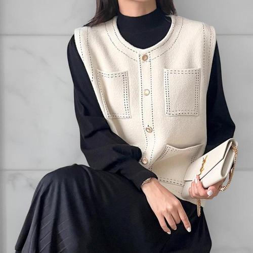 여성 봄가을겨울 PACHIRA 파키라 사각단추 라운드넥 꽈베기 케이블 니트 가디건 5칼라 /3