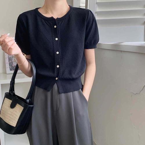 [셀럽하우스]툴루즈 NJOH9683 라운드 데일리 버튼 꽈배기 숏 가디건