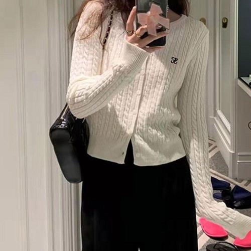 [옷자락]여자 부드러운 아크릴 꽈배기 라운드넥 가디건