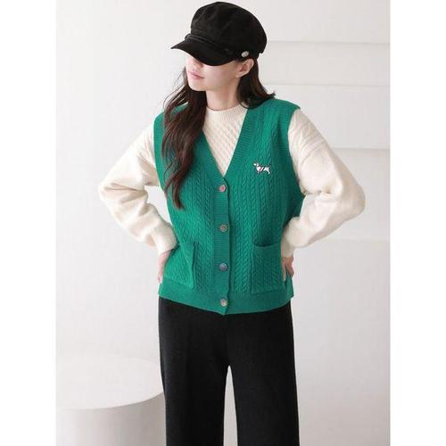 [하프클럽/]브이넥 꽈배기 자수 니트 베스트 (BW3VT001L0)