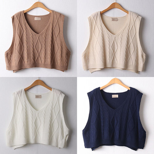 [다잇템][다잇템] 여자 V넥 FW 와플 보카시 덤블 꽈배기 니트조끼_22888083_588872