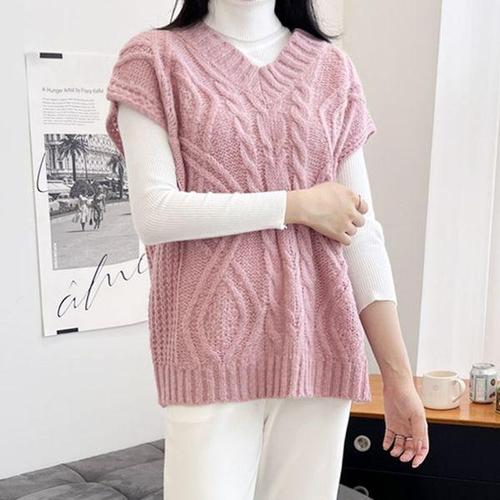 [신상오픈런]여성 부클 꽈배기 와플 브이넥 니트 조끼 가을용