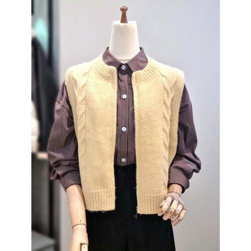 바이단미 여성용 니트 베스트 스웨터 꽈배기 케이블 도톰 배색 레이어드 단가라 라운드넥 조끼
