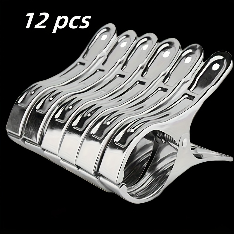 TEMU 6/12개 대형 스테인리스강 방풍 & 초강력 스프링 빨래줄 - 가정용 내마모성, 녹 방지 야외 세탁집게, 옷·이불·수건에 적합한 튼튼하고 오래가는 금속표면 디자인 세탁 액세서리