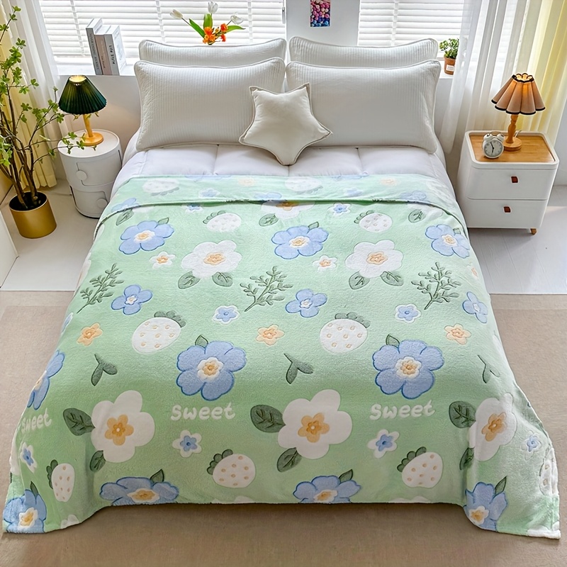 TEMU 1개 플로럴 눈꽃 양털 담요 - 부드럽고 통기성 좋은 사계절용 담요, 싱글/더블 사용 가능, 세탁기 사용 가능, 현대적인 스타일 & 플로럴 패턴, 거실, 침실, 야외 캠핑에 적합, 침대용 담요, 침실 액세서리, 손잡이 있는 담요, 사계절 담요