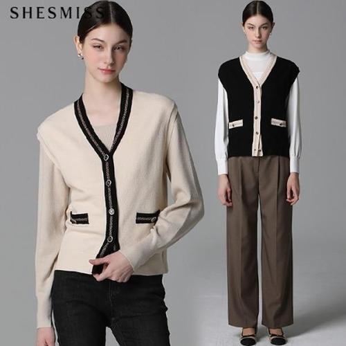 [쉬즈미스][쉬즈미스(SHESMISS)] 슬리브리스 니트 가디건 베스트 (택가격128000원)