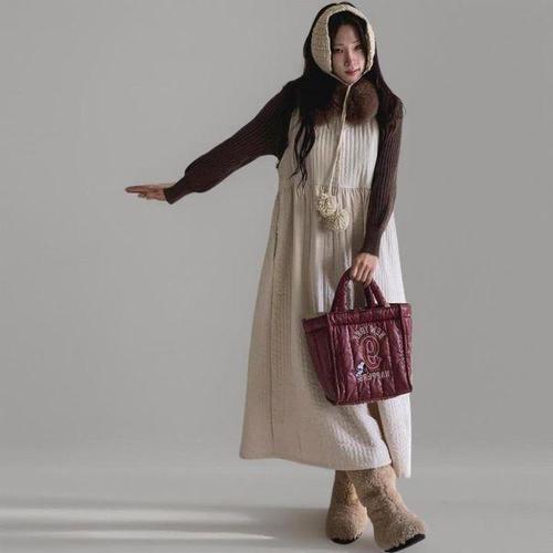 [옷자락] 여성면혼방핀턱퀄팅롱민소매원피스