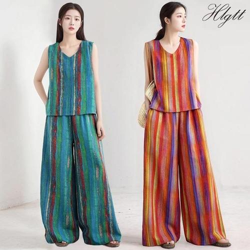 여성 린넨 민소매 나시 핀턱바지 상하세트 MCR-WSET-4689-아이보리