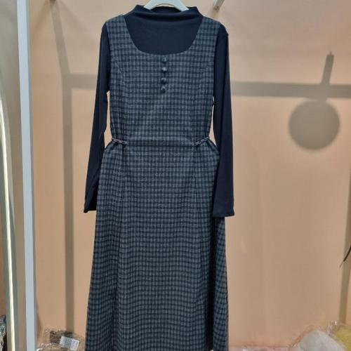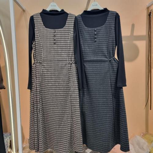 라티움 HC34 신축성좋은 콩단추 티 체크 민소매 원피스 셋트 T2533 se08