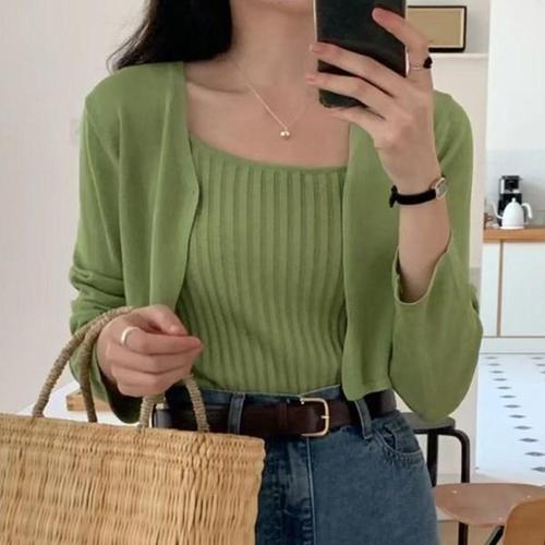[다잇템]여자 민소매티 탱크 골지 멀티컬러 카디건 세트