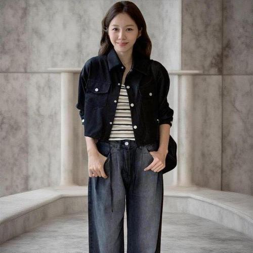 [옷자락]여성 스트라이프 나시 크롭탑과 청재킷 세트