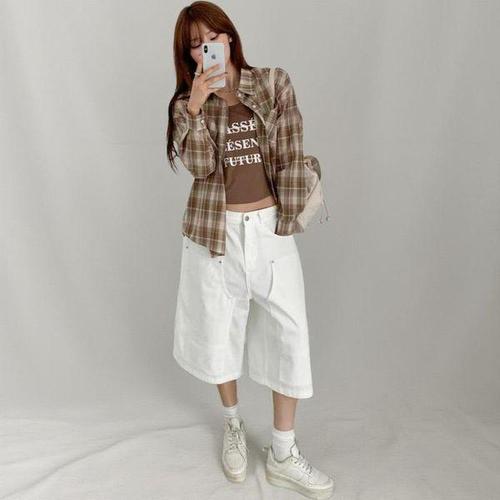 [미라클세븐]여성 루즈핏 레터링 나시 티셔츠와 셔츠 세트