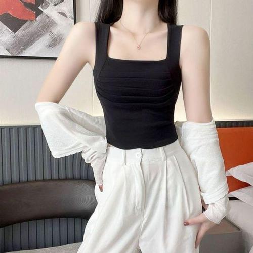 여성 신축성 좋은 소재 스퀘어넥 가벼운 이너 나시 크롭 여자나 시티 튜브탑 크롭탑