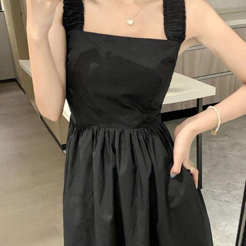 여자 바스락 스퀘어넥 플레어 민소매 심플 롱원피스