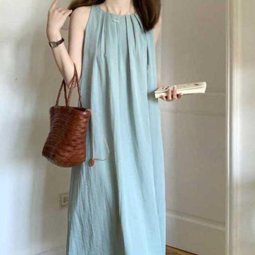 나시원피스 롱원피스 시원한 바캉스원피스 끈나시 (WFKEOS3)