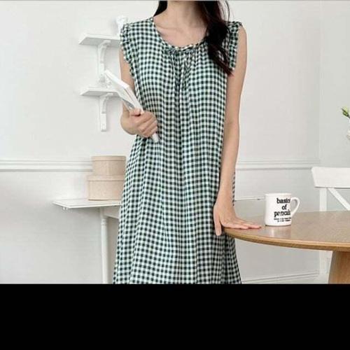 [모노무드]모노무드 은플레이스 셔링 원피스잠옷 나시 시원한잠옷 체크 나시원피스 원