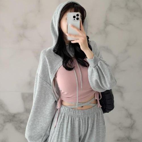 [옷자락] 여성 간절기 크롭 니트 나시 후드 가디건 세트