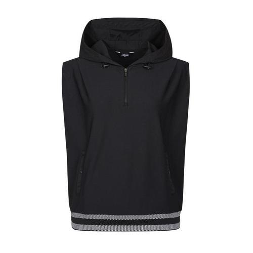 [팬텀]가을 여성 우븐 배색 후드 민소매 티셔츠 / 221D3TR203_BK_IC