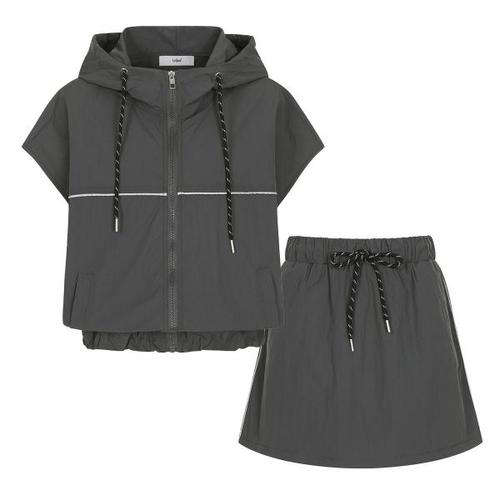 [르샵]후드넥 슬리브리스 집업 밴딩 바지안감 미니스커트 세트 SP5ST232
