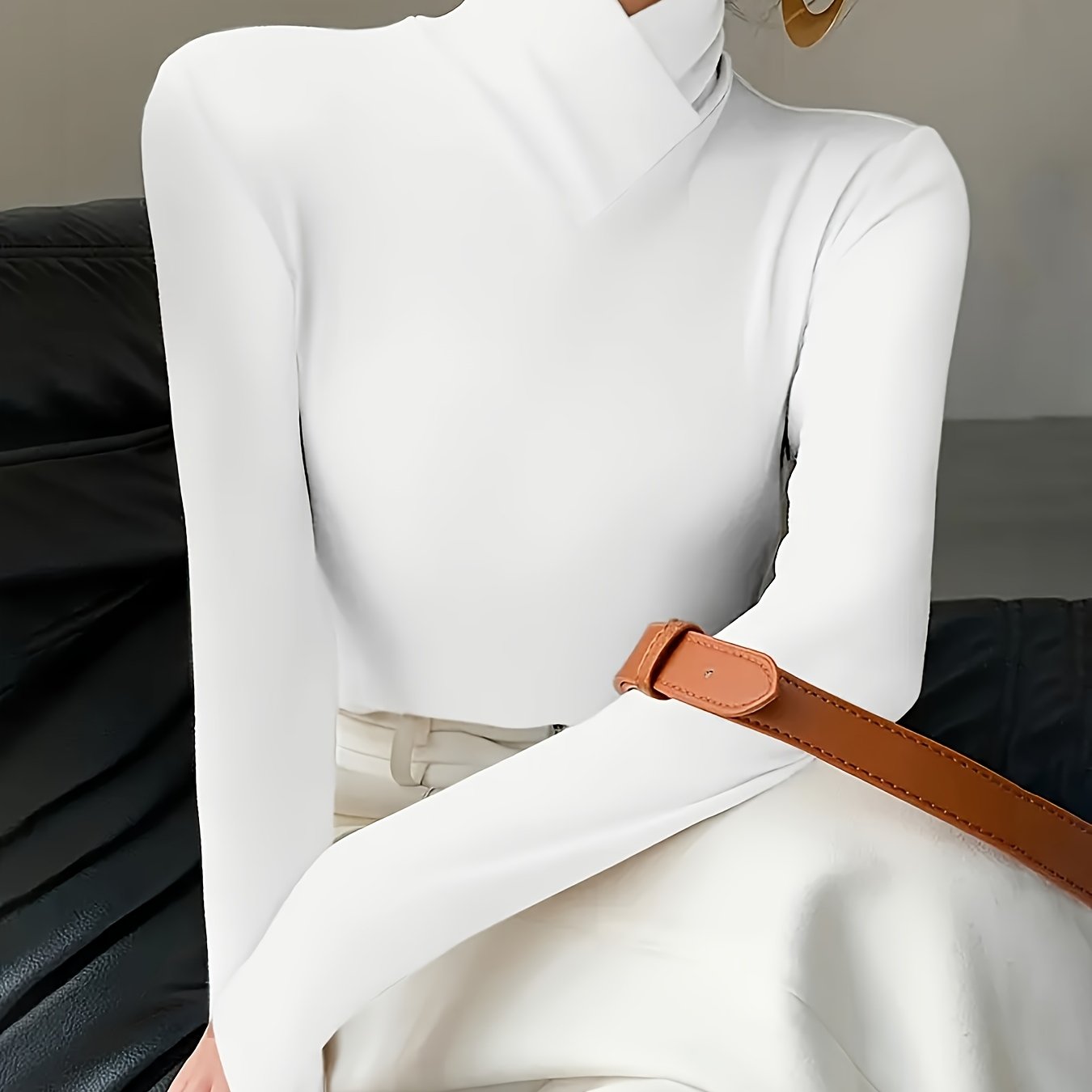 TEMU 여성용 화이트 루즈 오프숄더 긴팔 티셔츠, 베이스 레이어 탑으로 완벽.