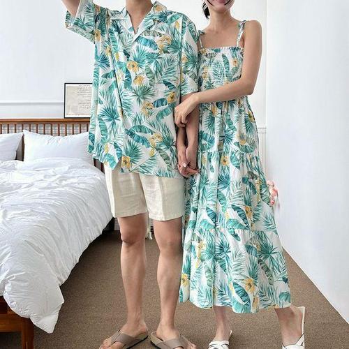 하와이안 커플 비치웨어 썸머룩 얇은 셔츠 롱원피스