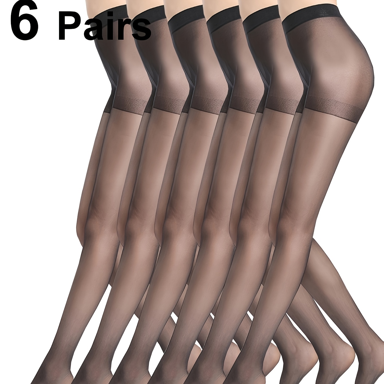 TEMU 6팩 여성용 시스루 하이웨이스트 타이츠 20D 지지력 강화 발가락 팬티스타킹