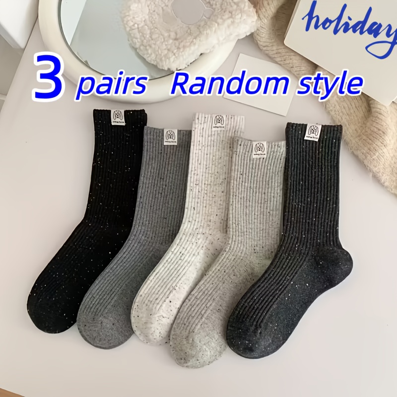 TEMU 여성용 두꺼운 겨울 양말 3켤레 - 부드럽고 포근한 미드 캐프 부츠 양말, 추운 날씨에 적합, 다양한 색상 (핑크, 그린, 옐로우, 오렌지, 브라운, 레드, 퍼플, 사이언) - 캐주얼 & 포멀한 자리에 적합한 세탁기 사용 가능한 코지 양말