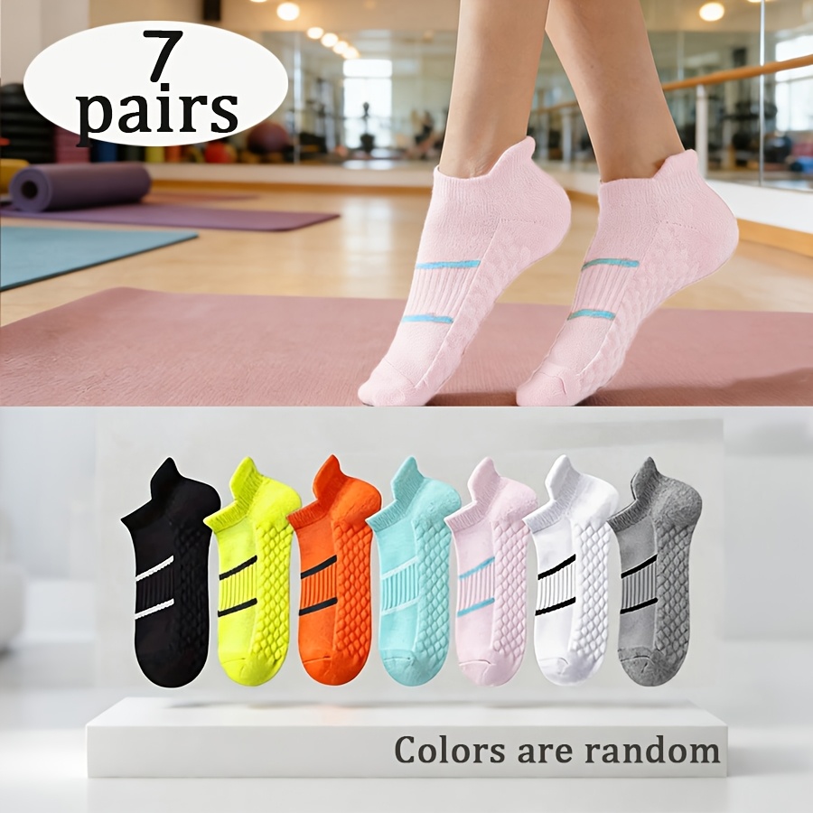 TEMU 여성용 단색 운동용 아치 숏삭스 7켤레, 랜덤 색상 - 다양한 색상 옵션 (핑크, 블루, 블랙, 화이트, 그레이, 네이비 블루, 투명) | 통기성 있는 아치 및 아치 안정화 기술 | 헬스장, 달리기, 스포츠용 - 멀티컬러