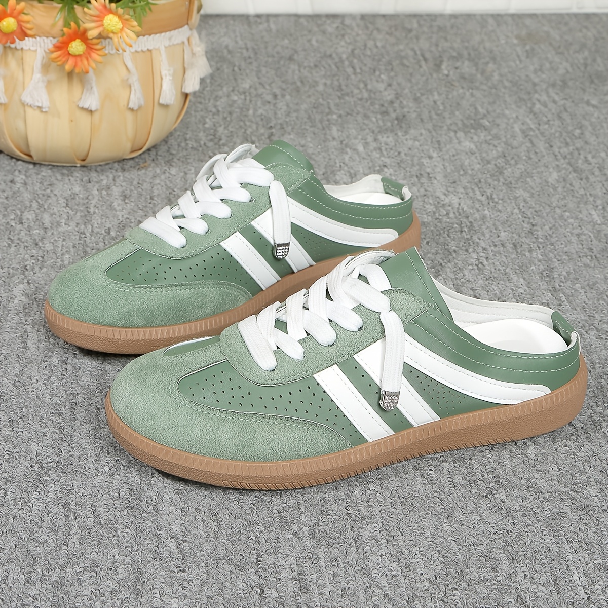 TEMU 소프트 빈티지 양면 멀 스니커즈, 여성 신발