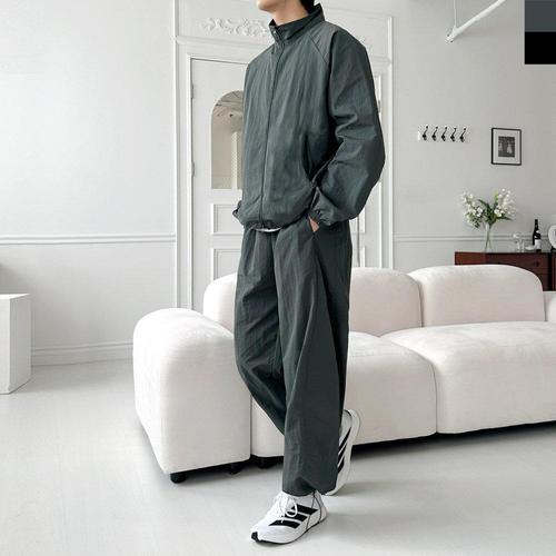 [리빌모아]남자 하프넥 오버핏 집업 나일론 와이드 바지 세트 DJ-SET-SGQQSF1033MSF1034M