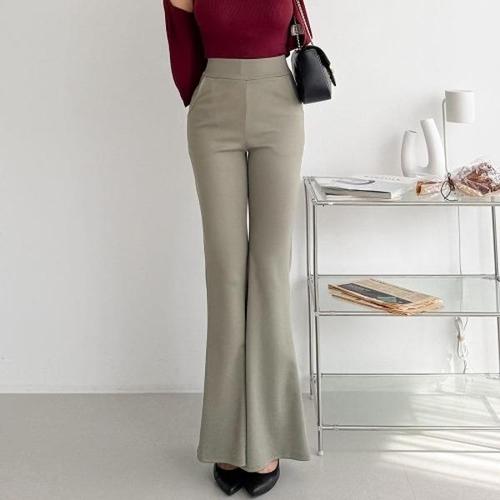 데일리룩 슬림 밑단절개 포인트 밴딩 여성 나팔바지