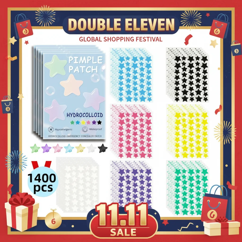 1400개 컬러풀 스타 여드름 제거 스티커 투명 통기성 하이드로콜로이드 여드름 패치 여드름 자국 커버 메이크업