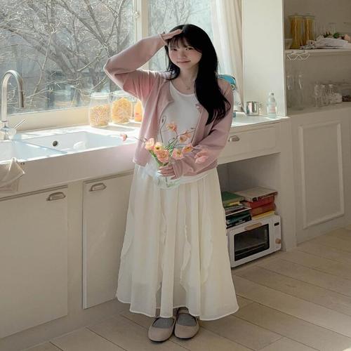 [엘루이즈][엘루이즈] [여신핏] 쥬루아 페어리 쉬폰 날개 프릴 롱 스커트(3color)