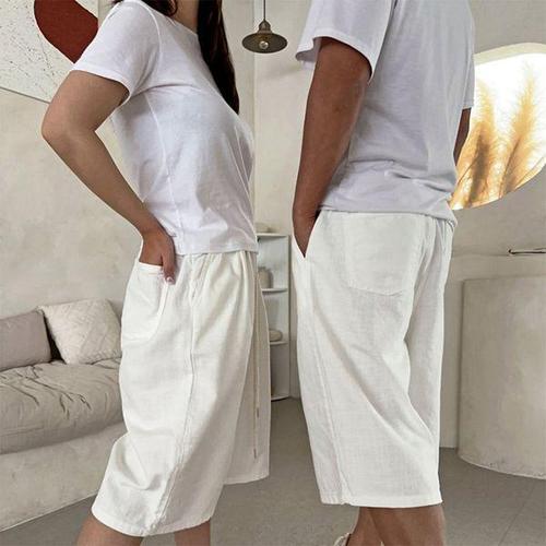 [옷자락]남녀공용 화이트 버뮤다 와이드 반바지 여름용