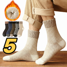 남성 배색 겨울 양말 장목 두꺼운 양모 파일 등산 방한 스포츠 양말 5켤레