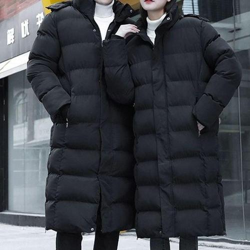 [에이치플러스몰]남성 기본 롱 패딩 점퍼 안감 털 블랙