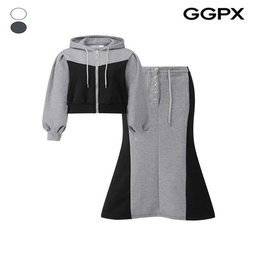 [GGPX]기모 배색 후드 집업 점퍼 앤 머메이드 롱 스커트 (GPBST006F)