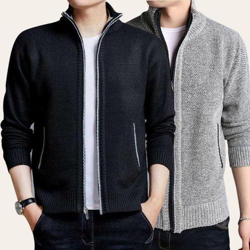 [에이치플러스몰]남성 지퍼 가디건 하프넥 기모 풀 집업 니트 자켓