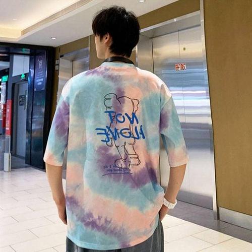 TBZ 오버핏 박스티 남자 프린트 반팔 페인트 티셔츠 기본티