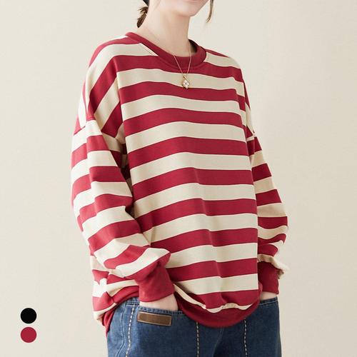 TKX 맨투맨 남성 스트라이프 라운드넥 롱슬리브 루즈핏 캐주얼 면 소재 가을 겨울 K37