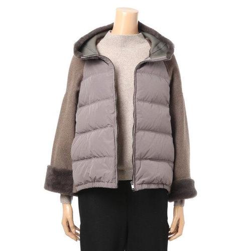 [벨라디터치]무스탕 배색 루즈핏 구스 코트 V1D4SP27_GN