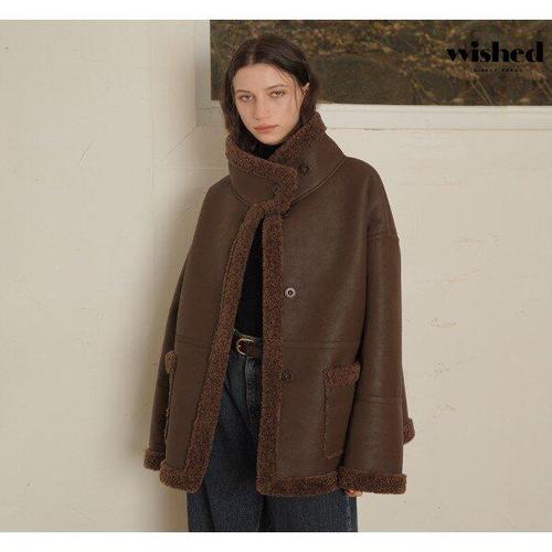 [위시드]하이넥 버튼 레더 무스탕 양털 하프 자켓 (WIBDJK007)