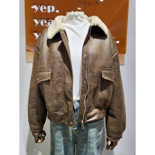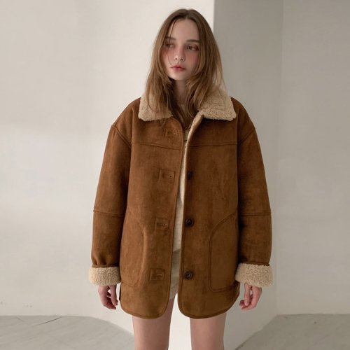 [당일출고] 스웨이드 무스탕 양털 점퍼 오버핏 크롭 자켓