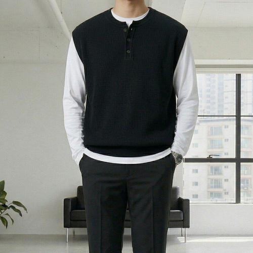 [쿼터]남자 헨리넥 골지 니트 조끼 봄 여름 베스트