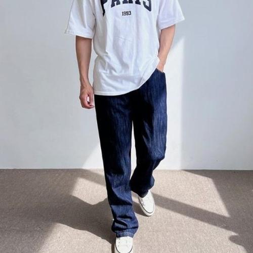 남자 여름 논페이드 스티치 와이드 데님 팬츠 AS-JES-Q007