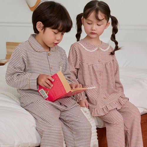 [알콩단잠]국내생산 남아 여아 유아동 파자마 잠옷 체크 파자마 선염기모 실내복