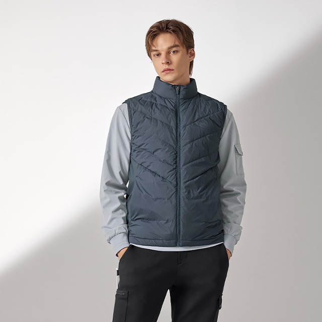 [디바옴므]덕다운 컴팩트 초경량 패딩조끼 골프 돗도 오리털 브이넥