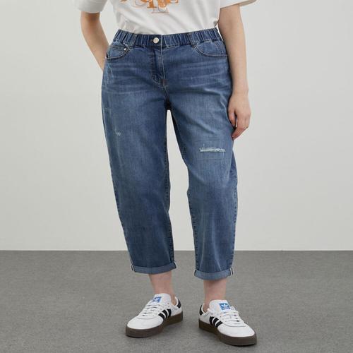 [로즈엘리]4컬러 배기 롤업 자수 청바지 사계절 데님팬츠