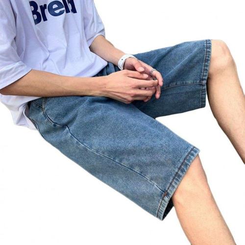 남성용 여름 와이드 데님 허리밴딩 청 반바지 캐주얼 버뮤다 팬츠 WFLMFOR