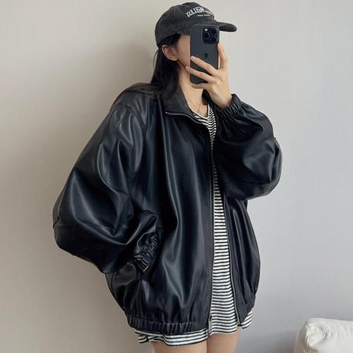 [드레스날다]말리아 시보리 싱글 페이크 레더 가죽 집업 점퍼